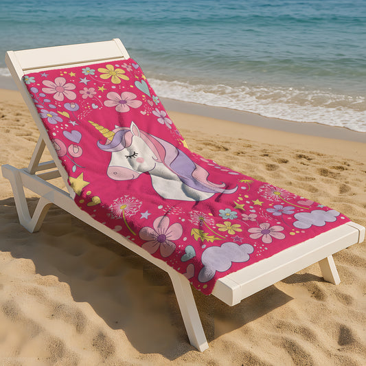 Pembe Unicorn Desenli Çocuk Plaj Havlusu – Masalsı Renkli Yaz Teması
