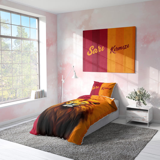 Aslanlı Sarı Kırmızı Nevresim Takımı (Çarşafsız)