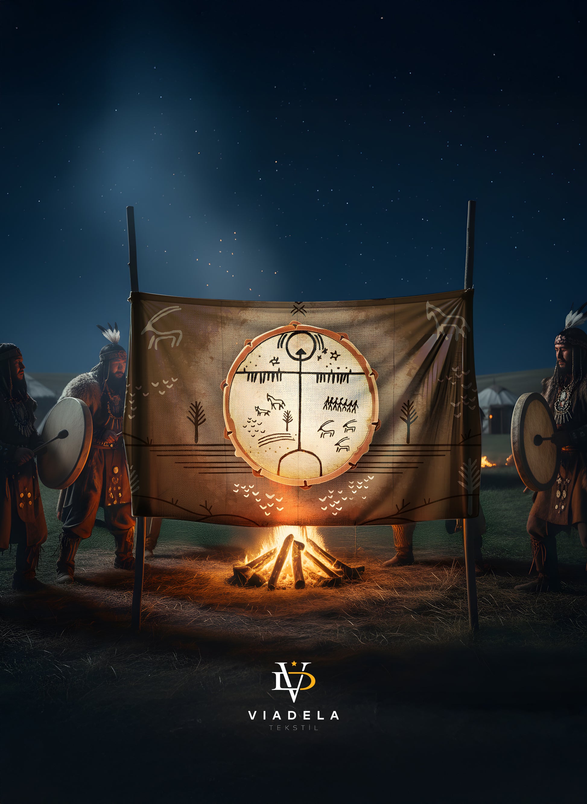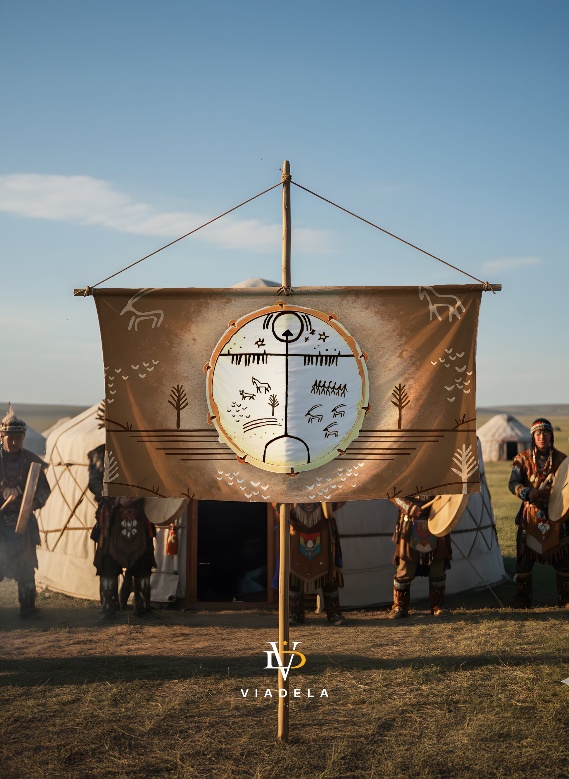 Paket İçeriği: 1 Adet 70x120 cm Şaman Davulu Temalı Duvar Örtüsü.