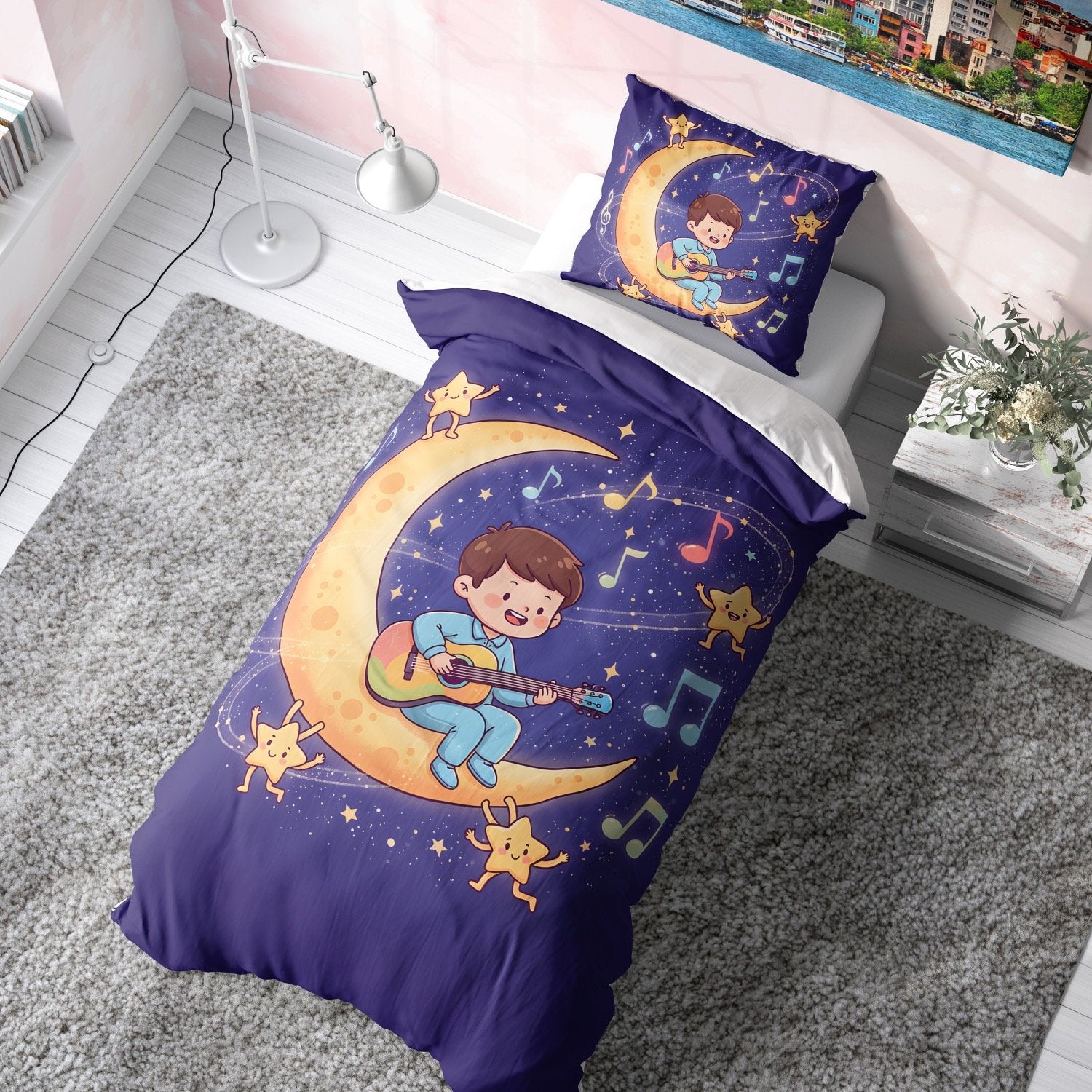Ay Üzerinde Gitar Çalan Çocuk Nevresim Takımı (Çarşafsız)