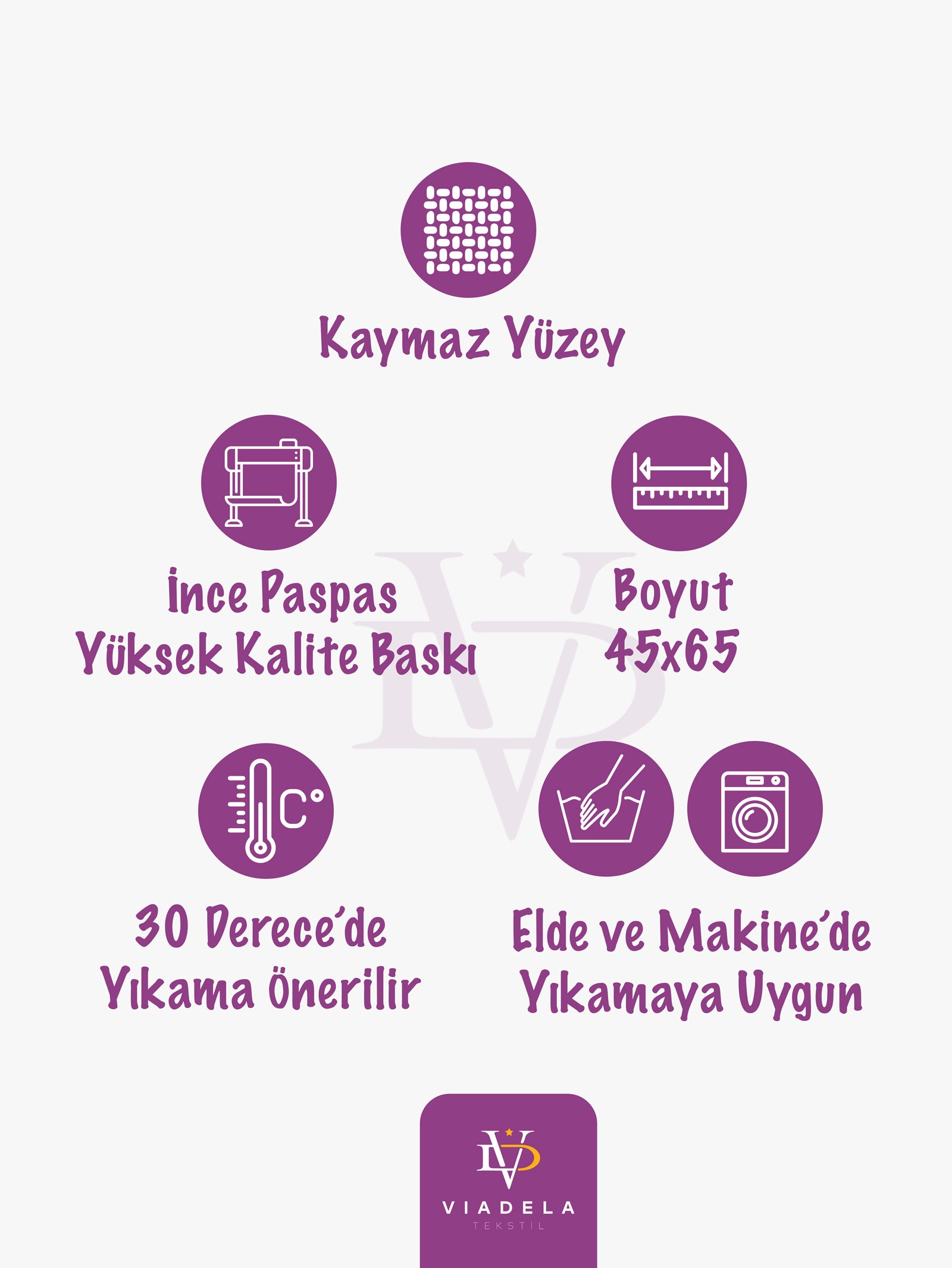İç ve dış mekanlar için uygun olan bu paspaslar, iç ve dış kapı önü, banyo, mutfak, balkon, teras gibi her alanda kullanımınıza uygun. Evcil hayvanlar için özel olarak tasarlanmış paspaslarımız, mama tabağı altlığı olarak da kullanılabilmekte. 45x65 ebatlarındaki bu paspaslar, sadece dekoratif değil, aynı zamanda işlevsel özellikleriyle de dikkat çekiyor. Evlerinize sofistike ve modern bir hava katarken, özel kumaşları sayesinde tozu ve kirleri hapsediyorlar. İnce yapılı kumaşları sayesinde su emilimini minimumda tutarak suyu, nemi ve kötü kokuları içinde barındırmıyorlar. Temizliği ise son derece kolaysadece silkelemeniz, süpürmeniz ya da suyla yıkamanız yeterli. Ayrıca kaymaz tabanları ve dayanıklı yapısıyla uzun ömürlü bir kullanım sunuyorlar.