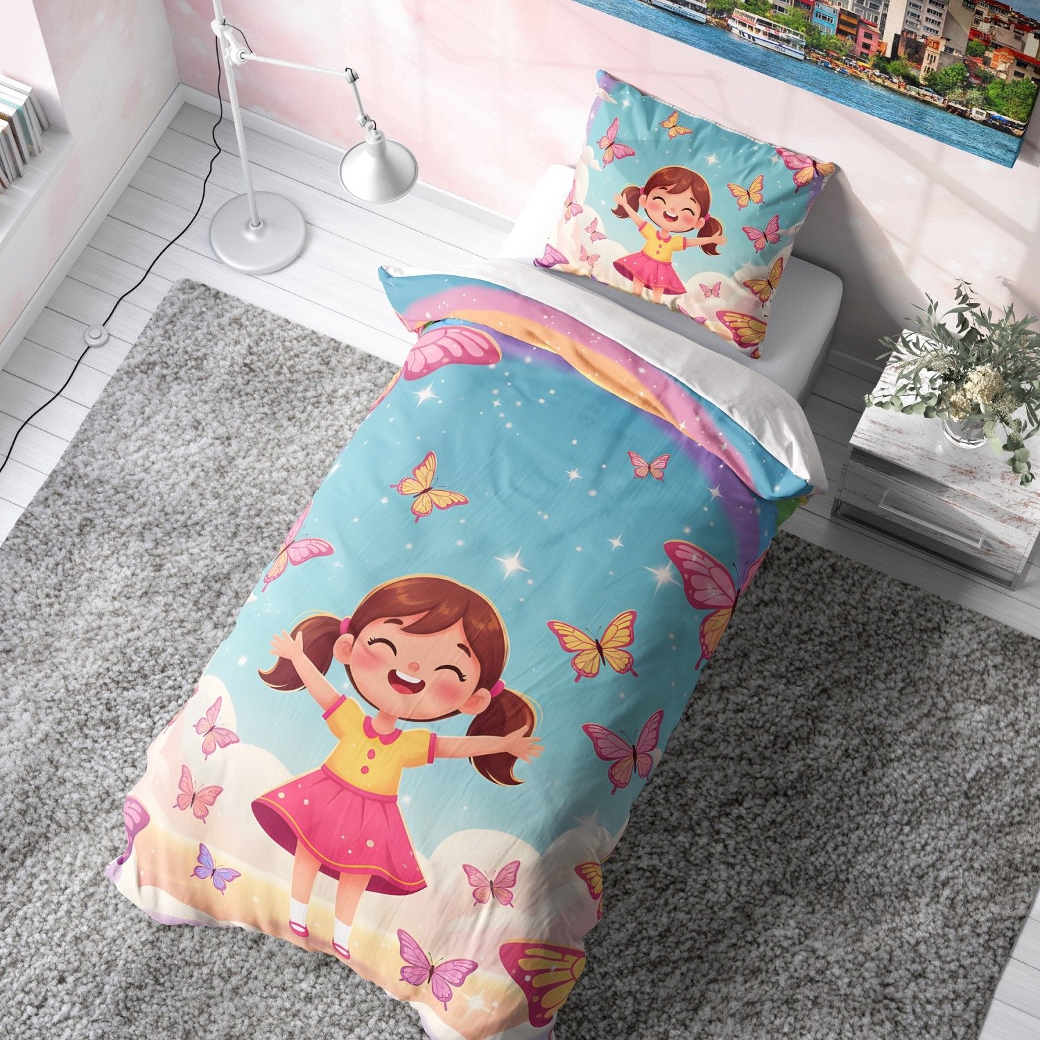 Gökkuşağı Kelebek Çocuk Nevresim Takımı (Çarşafsız)