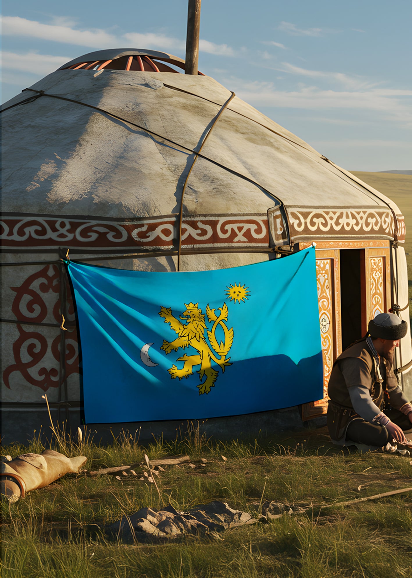 Tasarımda yer alan figür ve semboller; bozkır yaşamını, özgürlüğü ve Türk savaşçı geleneğini temsil eder. Tarihî bir devlet bayrağı değil, kültürel ve sanatsal bir yorumdur.
