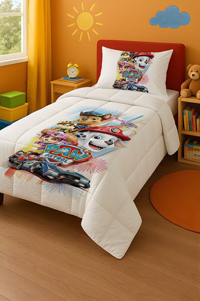 Paw Petrol Beyaz Tek Kişilik Yorgan ve Yastık Kılıfı