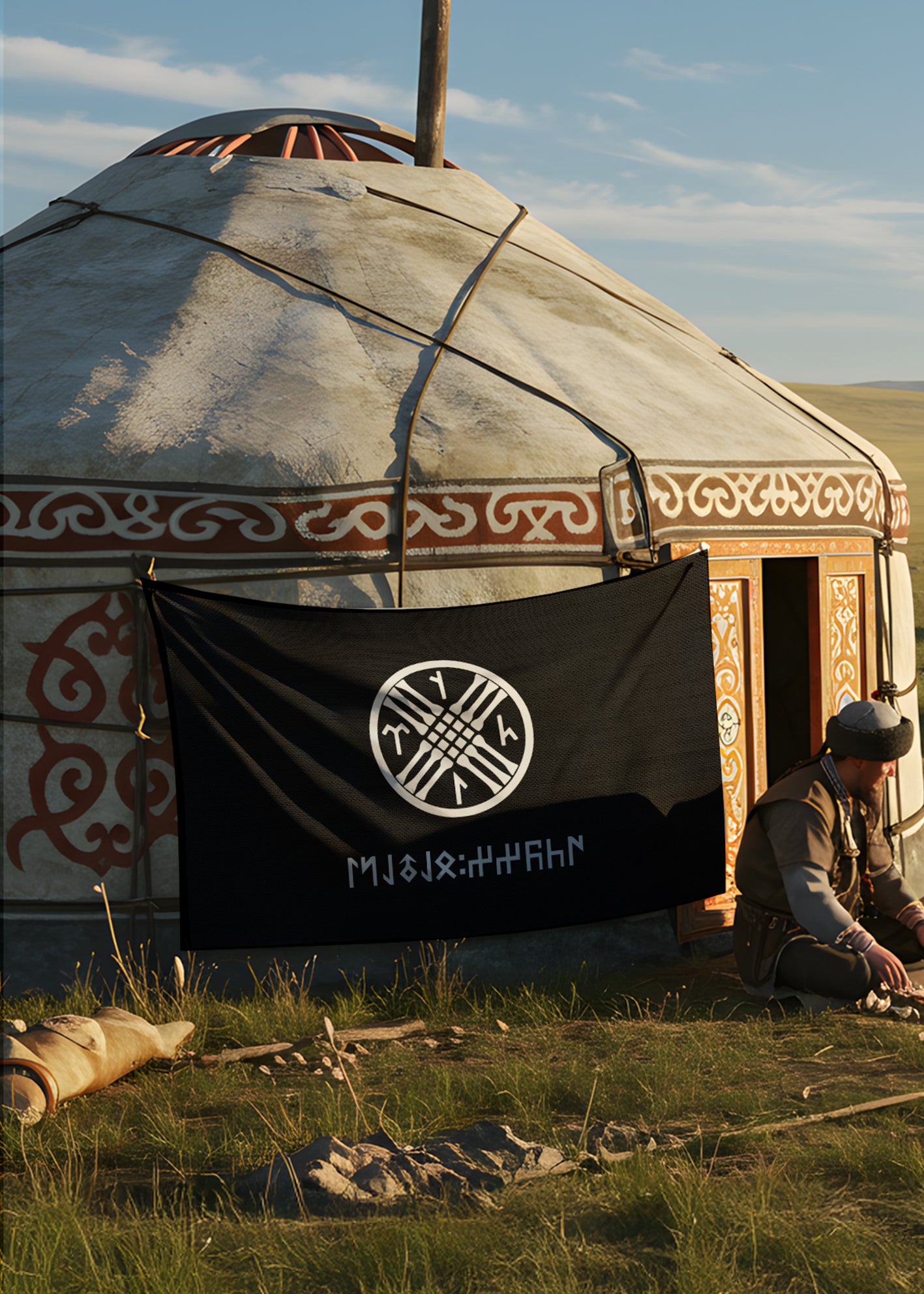 Tarih ve sanatın birleştiği bu özel duvar halısı, Türk kültürünün köklerinden ilham alarak tasarlandı. Üzerindeki Göktürkçe harfler ve geleneksel Türk motifleri, atalarımızın izlerini bugüne taşıyor. Orta Asya’nın derin ruhunu ve Göktürklerin görkemli mirasını evinize getiren bu eşsiz tasarım, sadece bir dekorasyon ürünü değil, aynı zamanda bir kimlik ve gurur ifadesidir.