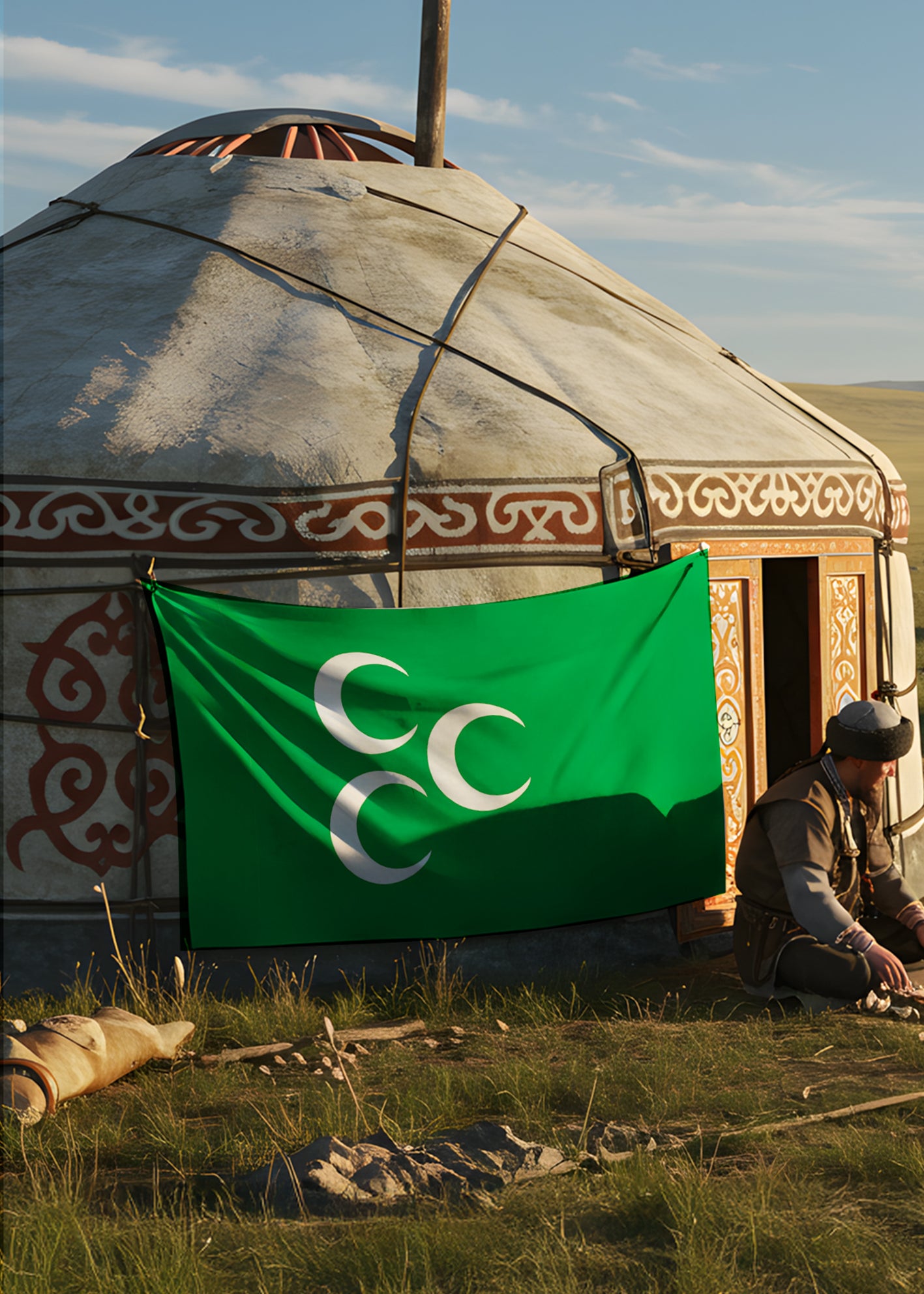 Tarih boyunca Osmanlı ordularında ve devlet geleneğinde kullanılan bu sembol, Türk–İslam medeniyetinin köklü mirasını yansıtır. Tasarımda yer alan üç hilal, tarihî bir bayraktan esinlenmiş olup kültürel ve sanatsal bir yorumniteliğindedir.